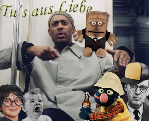 Die letzte schöne Woche habe ich in Meppen verbracht (auch schön!), ein Seminar besucht, einen kruden Bollywood Film gedreht und Dorfgraffitis bestaunt. Die Meppener Crew nennt sich "Smuf" und hat am örtlichen Aldi fett represented. Zurück in Hamburg hatte ich dann direkt das Vergnügen mich im U-Bahn Verkehr treiben zu lassen. Und wer Glück in den Taschen hat, der braucht keinen Walkman auf den Ohren. Gute Gäste im Zugabteil sorgen für Unterhaltung. Den Höhepunkt brachte eine Berufsschülerin, die offen gesagt, etwas quer im Auge lag. Aber sie wusste damit umzugehen und hat gleich mal angefangen ihrem Freund, ebenfalls ein Papiertütengesicht erster Klasse, eine wirre neuartige Form eines Liebesgedichtes vorzutragen. Man weiß bis heute nicht, ob der Inhalt gewollt, oder durch die Reimform vorgegeben war.